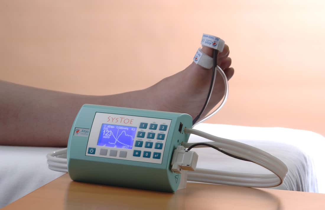 SysToe är en genialisk tillämpning av infraröd fotopletysmografi (PPG) kopplad till en unik algoritm, utvecklad och patenterad av Atys Medical. Med hjälp av en fotoelektrisk cell detekteras PPG förändringar i blodflödet i hudens kärl.